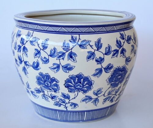 BLUE & WHITE LEAF CERAMIC PLANTER – 36X45CM