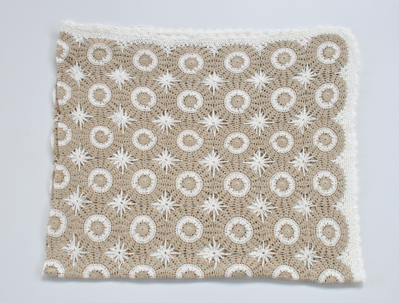BEIGE & WHITE CIRCLE CROCHET THROW 125X150CM