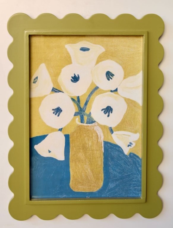 FLOWER PICTURE | GREEN SCALLOPED FRAME – 2.5X60X42CM
