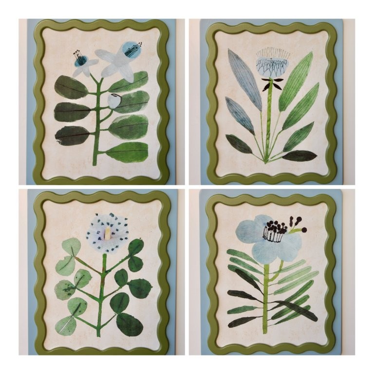 FRAMED BLUE & GREEN SCALLOPED FLOWER PICTURE – 1.5X47X39CM