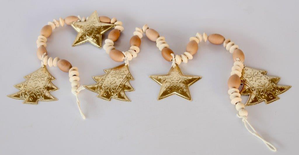 METAL GOLD STARS & TREES ON STRING – 92CM