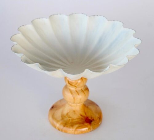 WHITE METAL STAND | BOWL WITH WOODEN BASE – 23X30CM