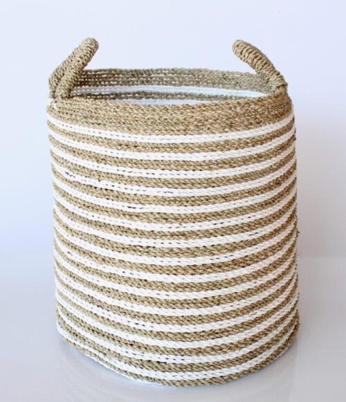 WHITE & NATURAL BAMBOO BASKET / BLACK STRIP