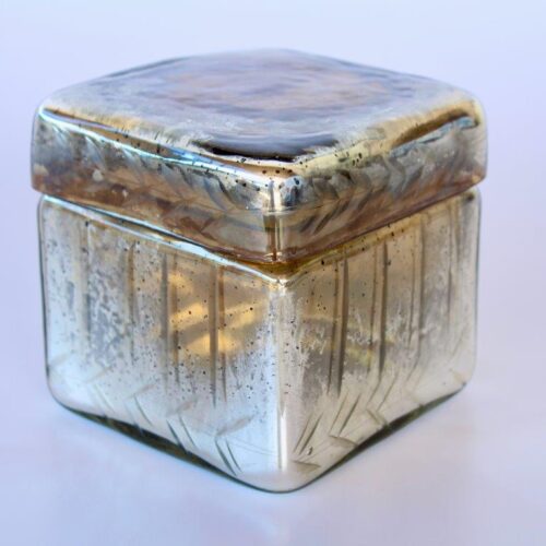 SQUARE SILVER GLASS BOX – 13X13X13CM