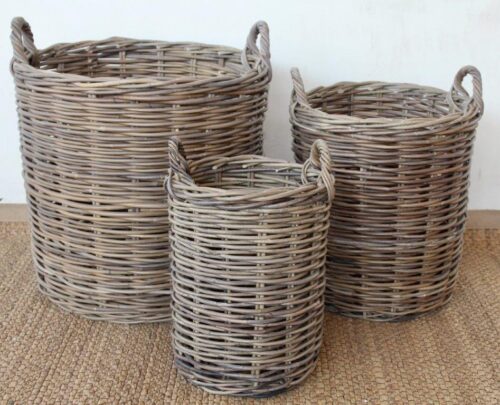 RATTAN GREY ROUND BASKET