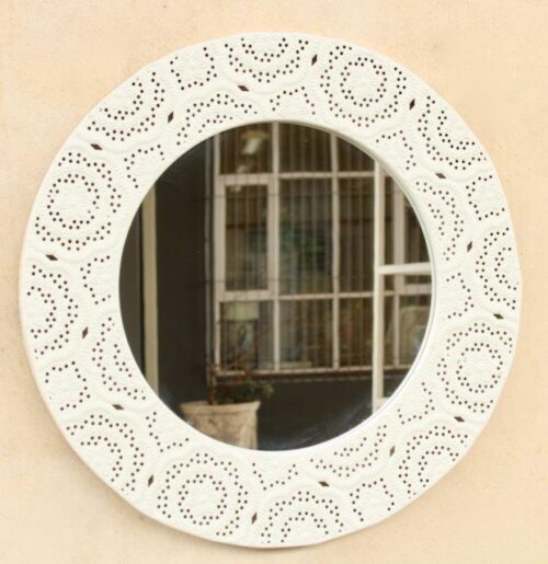 WHITE ROUND METAL CUT-OUT MIRROR – 60CM