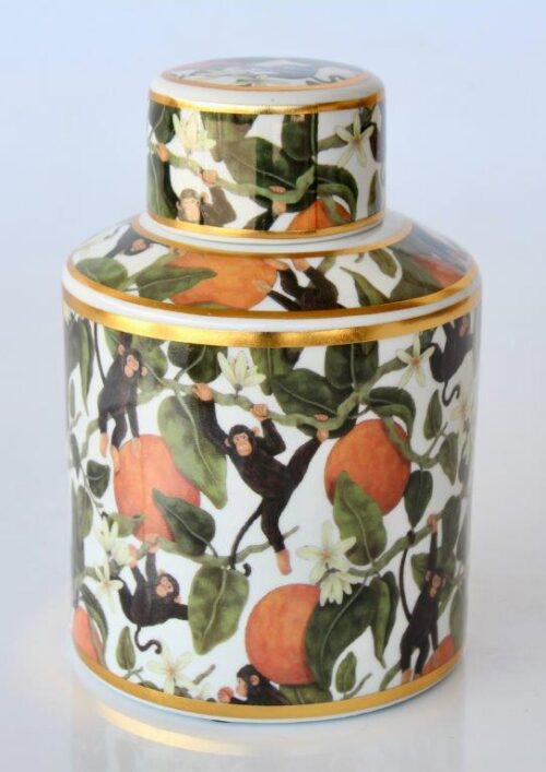 ORANGE MONKEY IN FRUIT TREE DESIGN CERAMIC JAR – 21X13CM