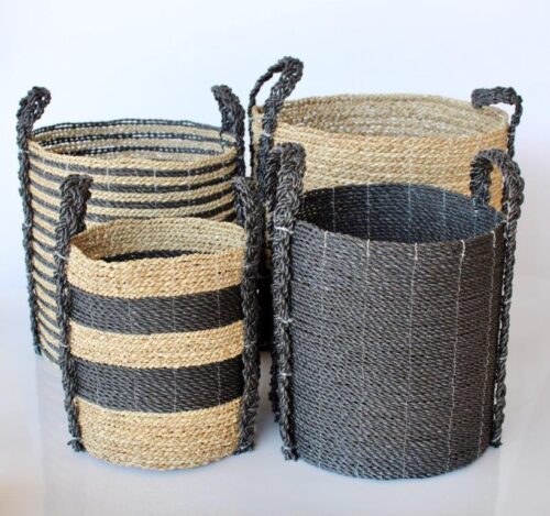 BLACK & NATURAL SEAGRASS BASKET / HANDLES – 33X38CM